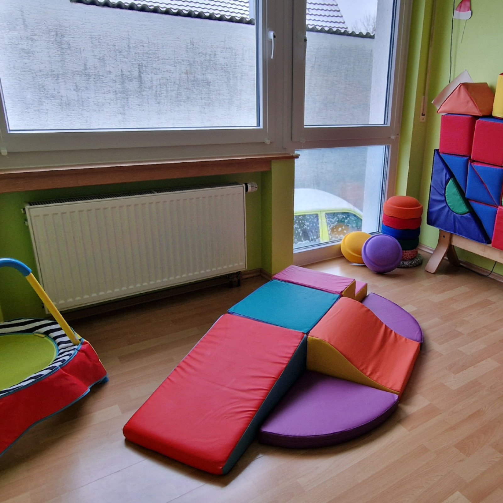 Kinder hüpfen auf ein Trampolin, balancieren auf Balken oder bauen mit XXL Stoffbausteine