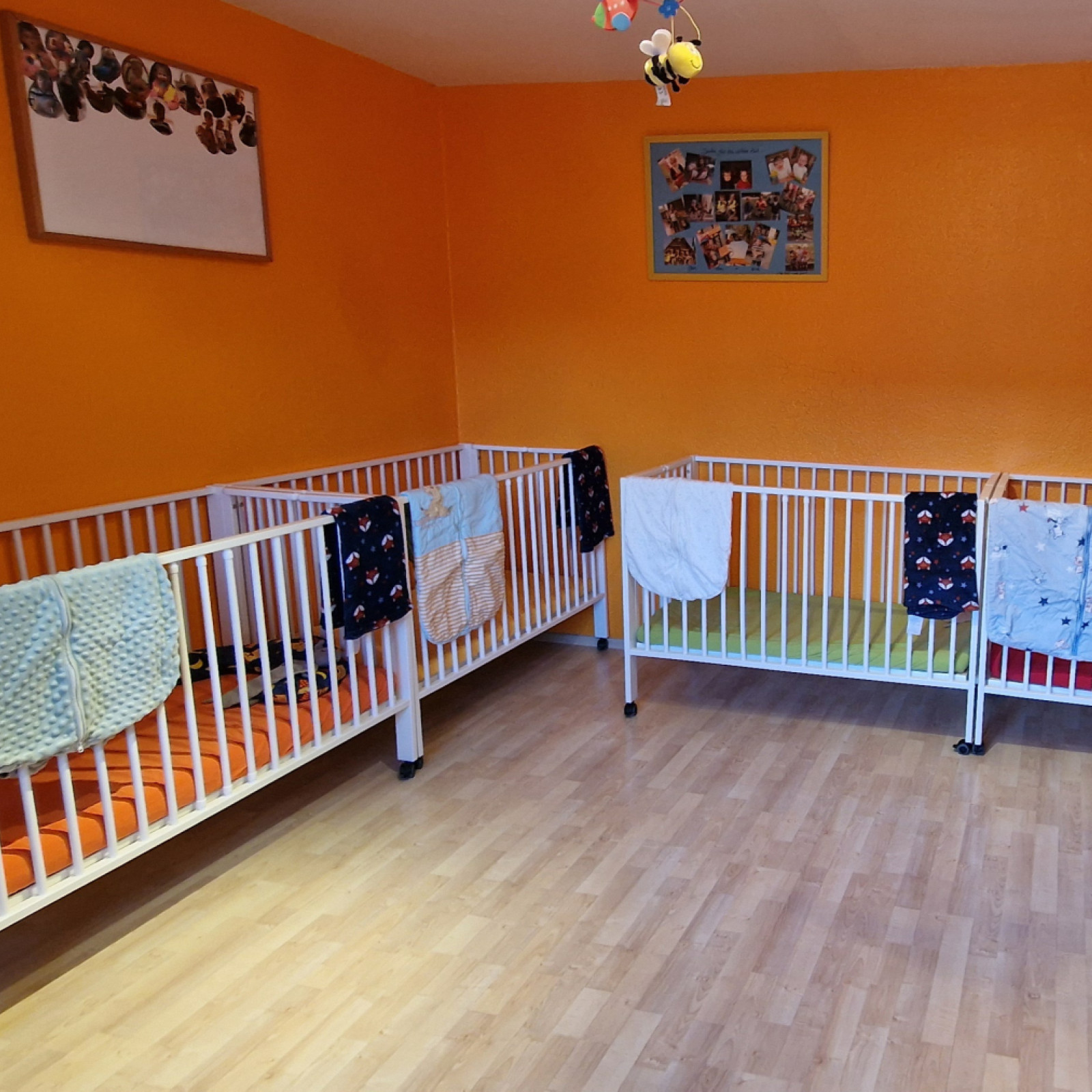 Der Schlafbereich ermöglicht den Kindern Rückzug, Ruhe und Erholung im Tagesablauf.